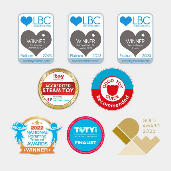 Notre engagement à offrir des expériences de jeu sûres, de haute qualité et enrichissantes nous a valu de nombreuses distinctions, dont la prestigieuse accréditation STEAM décernée par la US Toy Association.